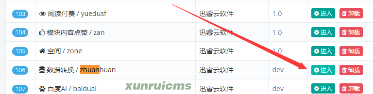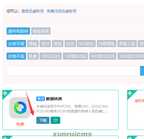 2、进入迅睿CMS后台,应用市场,找到数据转换插件。