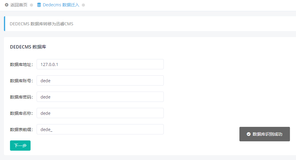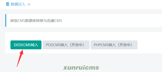 说明:新安装的程序需要与原站(DEDE)的数据库在一个服务器下。插件仅能转移栏目、文章等数据(图片需要将原站的素材文件夹uploads复制到迅睿CMS的根目录)