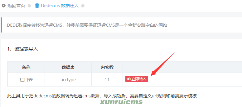 这时候内容已经转移过来了,url需要自行更新,或者使用迅睿规则来做成以前的老URL。