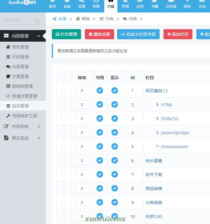 8、然后切换到迅睿CMS栏目管理,看是否转移成功: