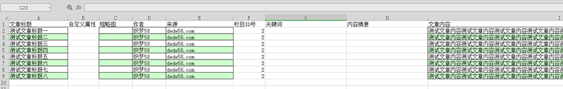 织梦dedecms批量导入excel表文章内容插件效果截图: