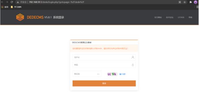 网站后台: http://192.168.59.1/dede/login.php?gotopa...