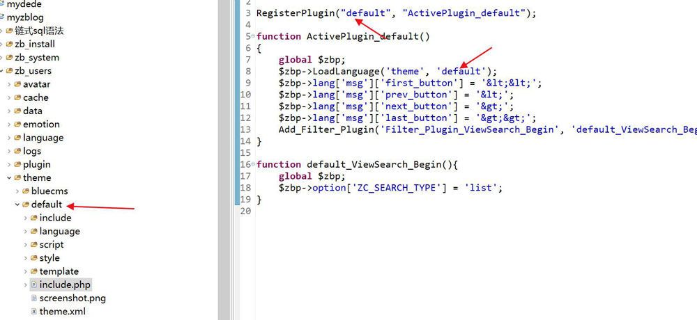 如图三红色箭头标注的地方都是需要填写default,至于主题其他地方该填写什么,大家可以参考default默认主题来写。