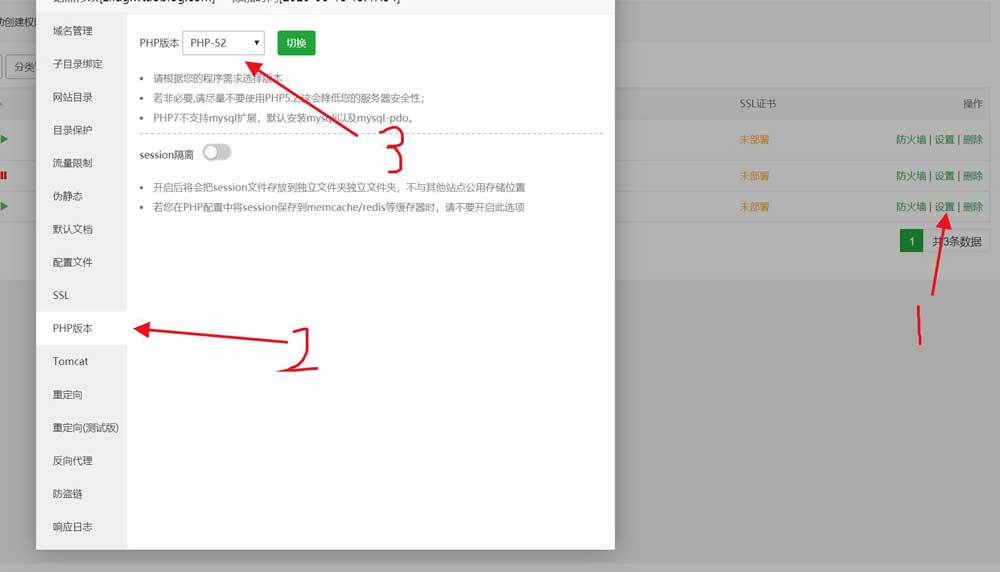 以腾讯云服务器为例,打开宝塔面板,选择网站-设置-php版本-php版本,选择相应版本后,切换即可,如果没有相关版本,则需要我们从宝塔的软件商店里搜索安装相应的php版本,如下图一。
