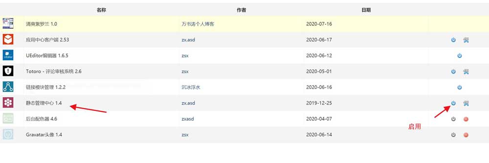 作者:本站作者 人气:zblog默认是带静态链接插件的,打开zblog后台,选择插件管理-静态化管理中心,然后选择启用即可,启用后点击右侧小锤子图标即可进行静态化配置,如下图一