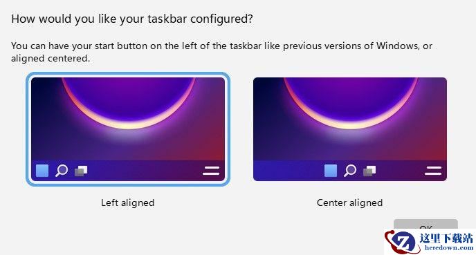 一旦Start11安装并运行,它将提示您选择左对齐或居中对齐。