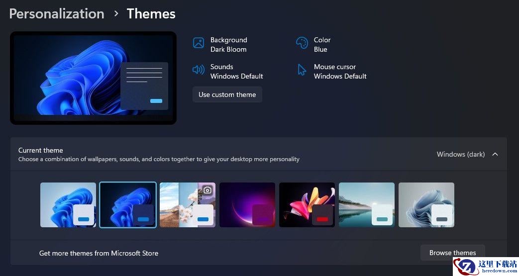 为此,请导航至设置 > 个性化 > 主题,并将当前主题设置为深色。它应在可用主题列表中的第二个位置。