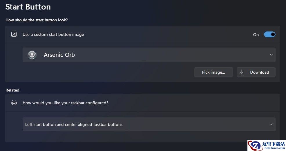 在“您希望如何配置任务栏”一节中,从下拉菜单中选择“左侧开始按钮”和“居中对齐的任务栏按钮”。