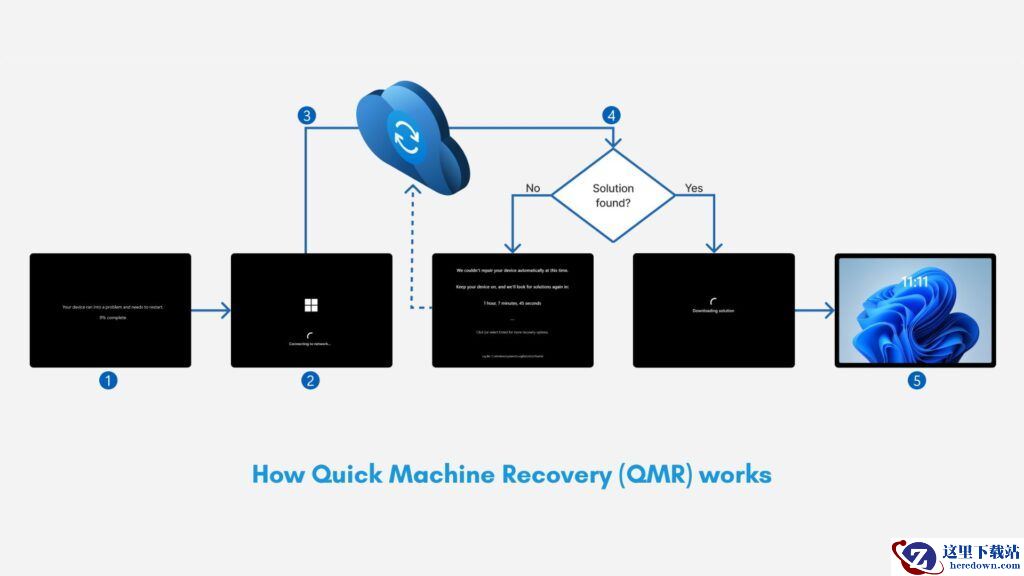 WinRE 已经存在于 Windows 系统中多年,但 QMR 功能通过连接到微软的云诊断,会将您的电脑诊断数据发送到微软的服务器,服务器将分析问题并尝试推送修复方案。