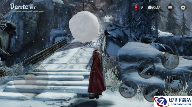 考虑到虚拟摇杆毕竟没有实体那样的位置感,去拉需要判定正反的方向时比较容易出现误差,在体验上是比较负面的,这一点曾经通过手机模拟器玩过PS2动作游戏的玩家应该有所体会。这方面我比较认可这个简化,至于单纯的按键设计会不会让游戏的输入变得简单无脑、一键“鬼泣”,答案是不。