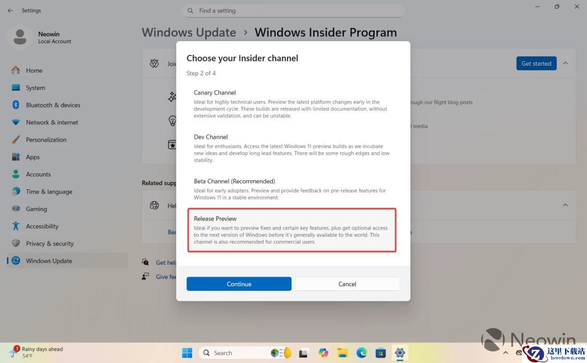 3.从可用渠道列表中选择“发布预览”,然后按照屏幕上的说明继续操作。只需接受条款和条件并重新启动系统即可。