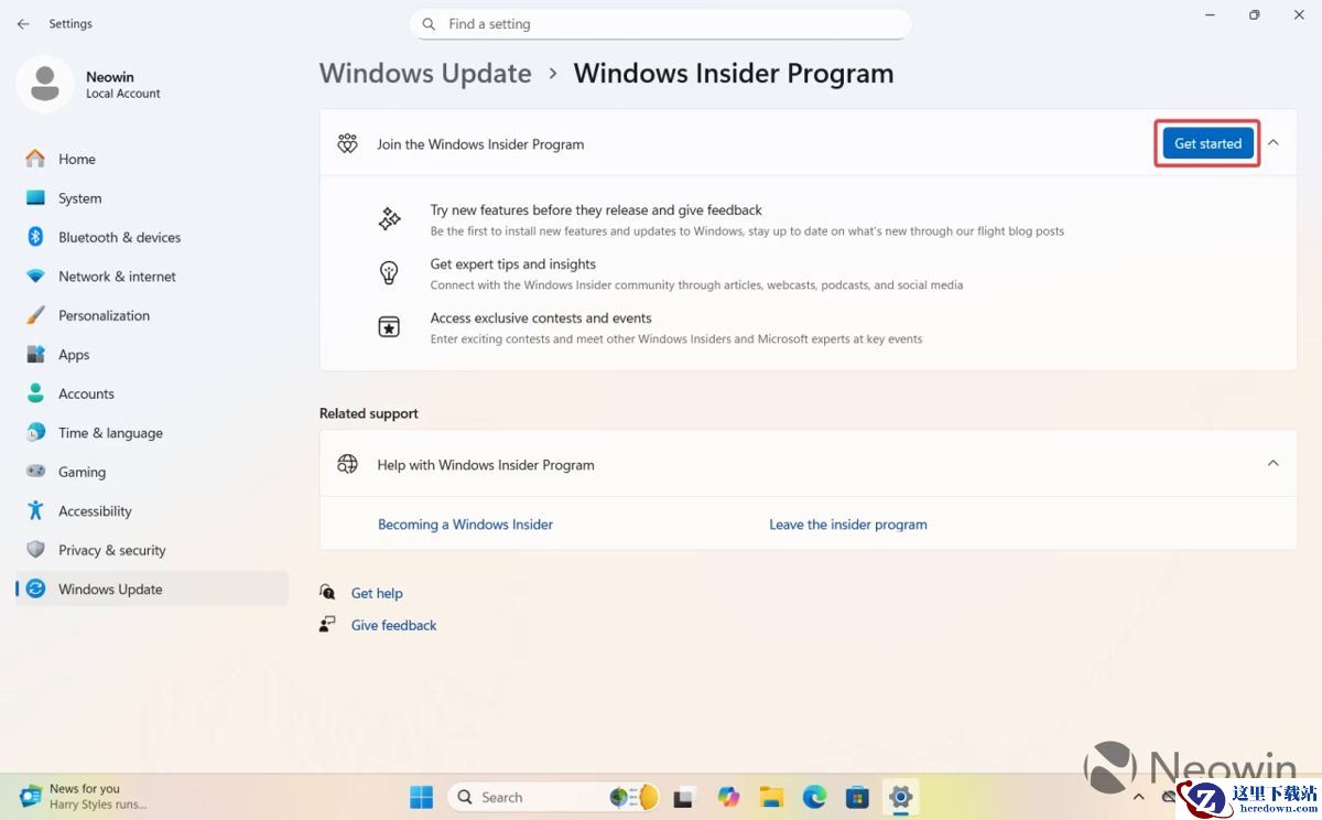 1.转到设置 > Windows 更新 > Windows 预览体验计划。