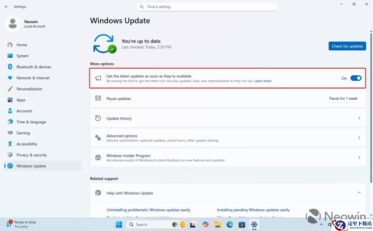 1.转到“设置”> Windows 更新并切换到“尽快获取最新更新”选项并确认您的选择。