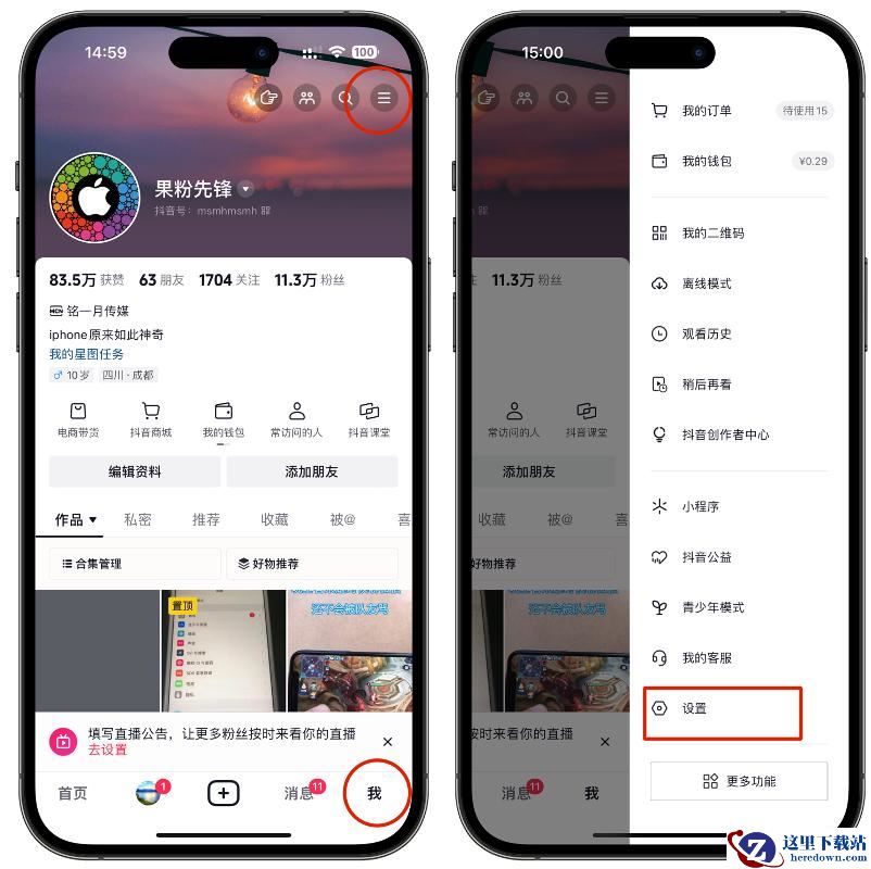 经常刷抖音的时候,都会造成 抖音缓存越來越大,也会影响iPhone储存空间,可以打开抖音选择「我」>右上角三个横线「设置」」內找到「清理缓存」