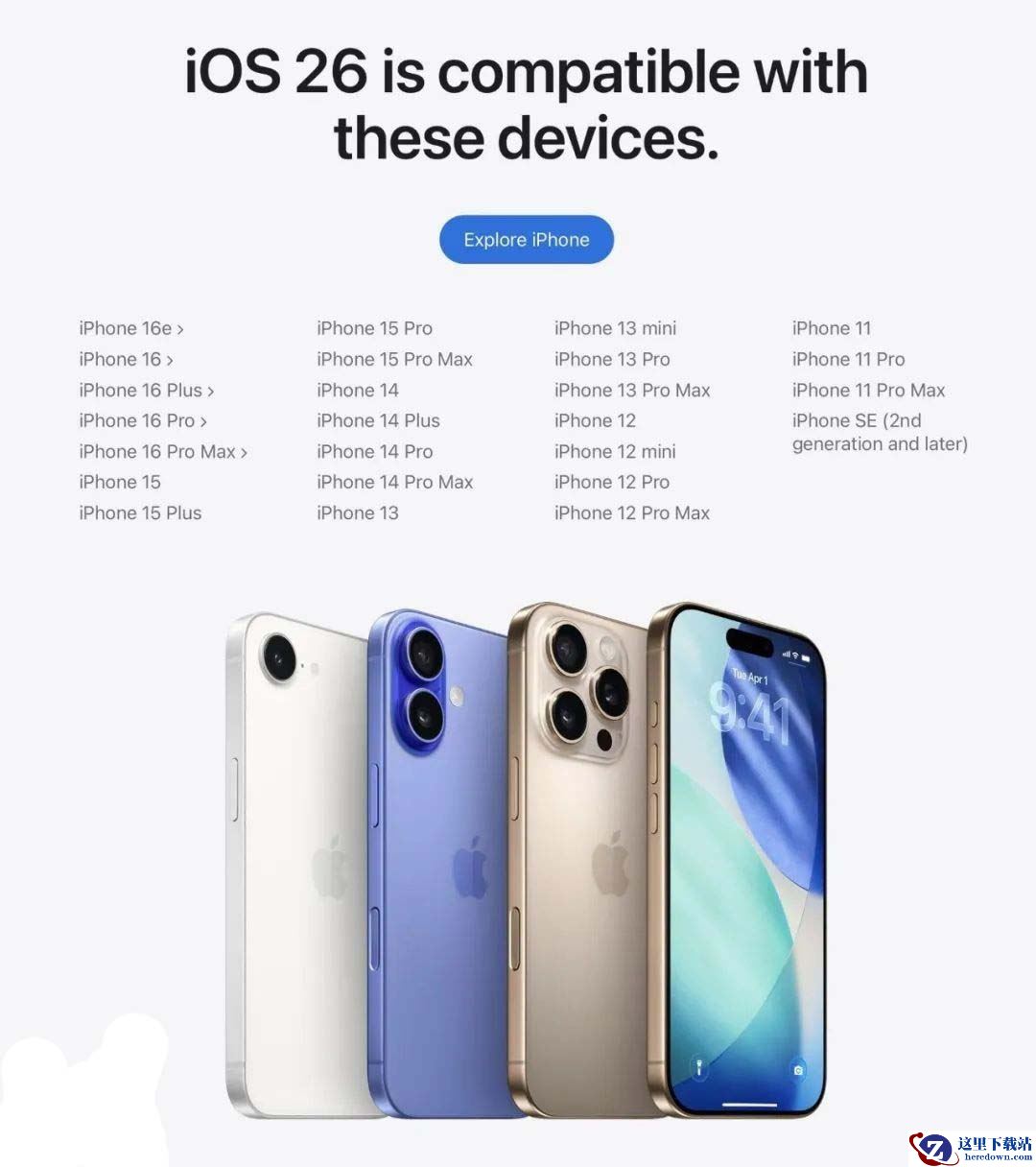 支持升级 iOS 26 的机型名单如下: