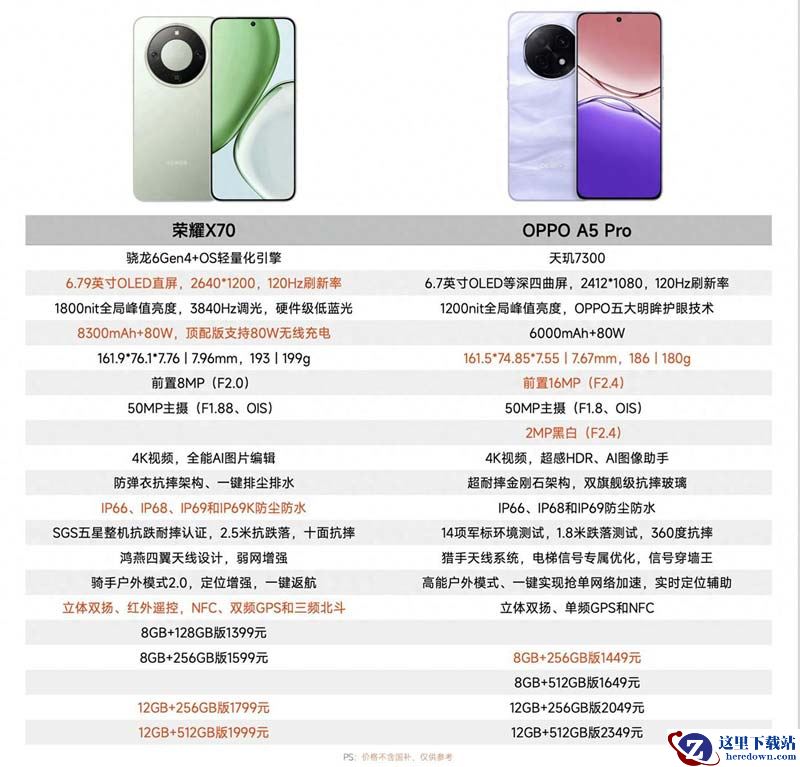 差价150元如何选? 荣耀X70和OPPO A5 Pro配置区别对比