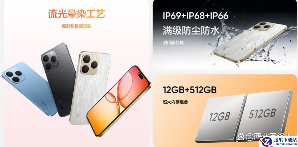 手机提供三种配色:流光白采用旗舰同源流光晕染工艺,实现“一机一色”的定制效果;夜光蓝通过纳米级微晶光刻技术还原蓝调天空质感;魅影黑则为细腻磨砂质感。