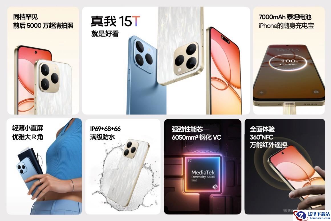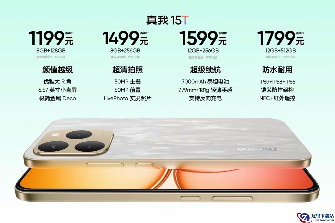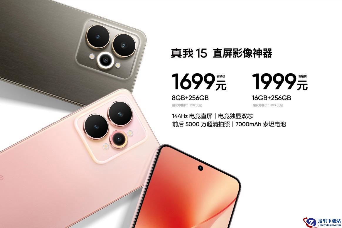 直屏影像神器——真我15,搭载144Hz电竞直屏,配备真我数字系列首个独显电竞双芯。同时配备前后5000万超清拍照、7000mAh泰坦电池和IP69满级防水,首销价1699元起。超能小直屏——真我15T,主打轻薄小直屏和耐用长续航,机身采用6.57英寸小直屏和大R角设计,并拥有真我15 Pro同款流光晕染工艺,同时配备7000mAh泰坦电池与IP69满级防水,首销价1199元起。