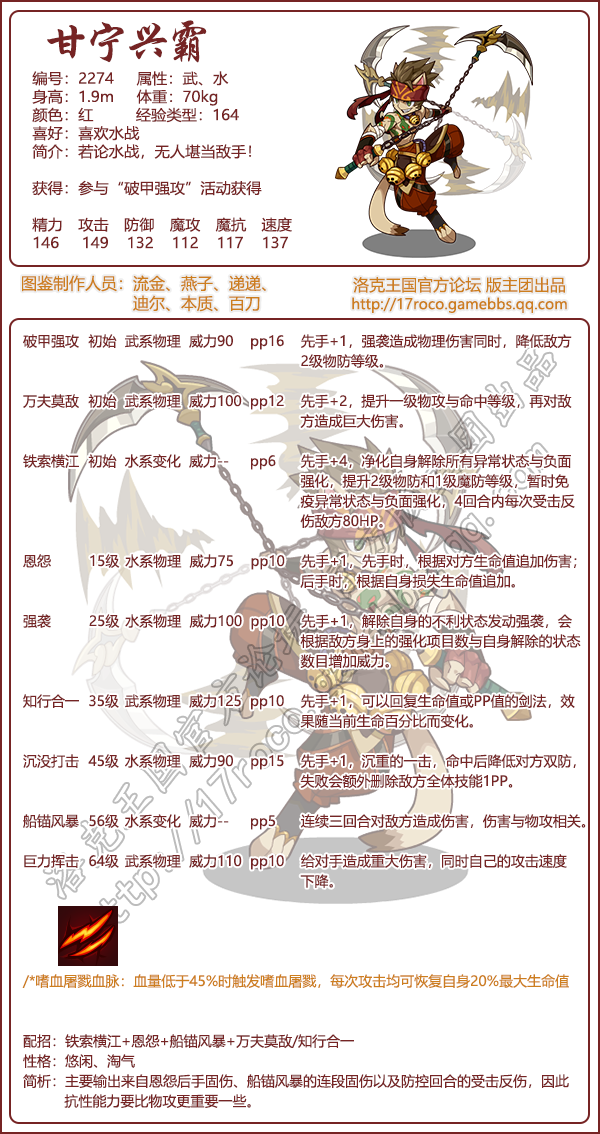 《洛克王国》甘宁兴霸技能表图鉴