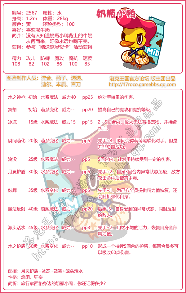 《洛克王国》奶瓶小鸭技能表图鉴