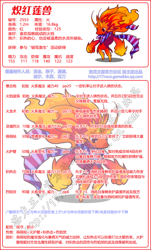 《洛克王国》炽红莲兽技能表图鉴