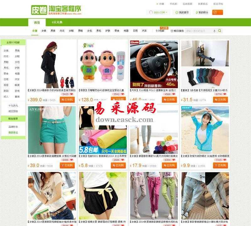 仿九块邮免费淘宝客程序 v6.026.87 .MB109人下载杨他他淘宝客采用thinkphp框架开发,程序与模板分离,便于二次开发与管理,此次免费分享版提供一套仿九块邮模板,后台自带商品采集功能,用户只需要在后台填写自己的淘点金代码