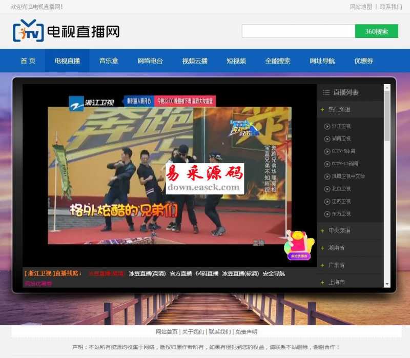网盘大师电视直播源码 v5.01.31 .MB87人下载网盘大师电视直播源码5.0更新说明: (1)优化了风云直播的显示效果,增加了多乐音乐播放窗口; (2)增加了在线天气功能 (3)首页进一步精简,导航条扩展到8个类目 (4)增加了