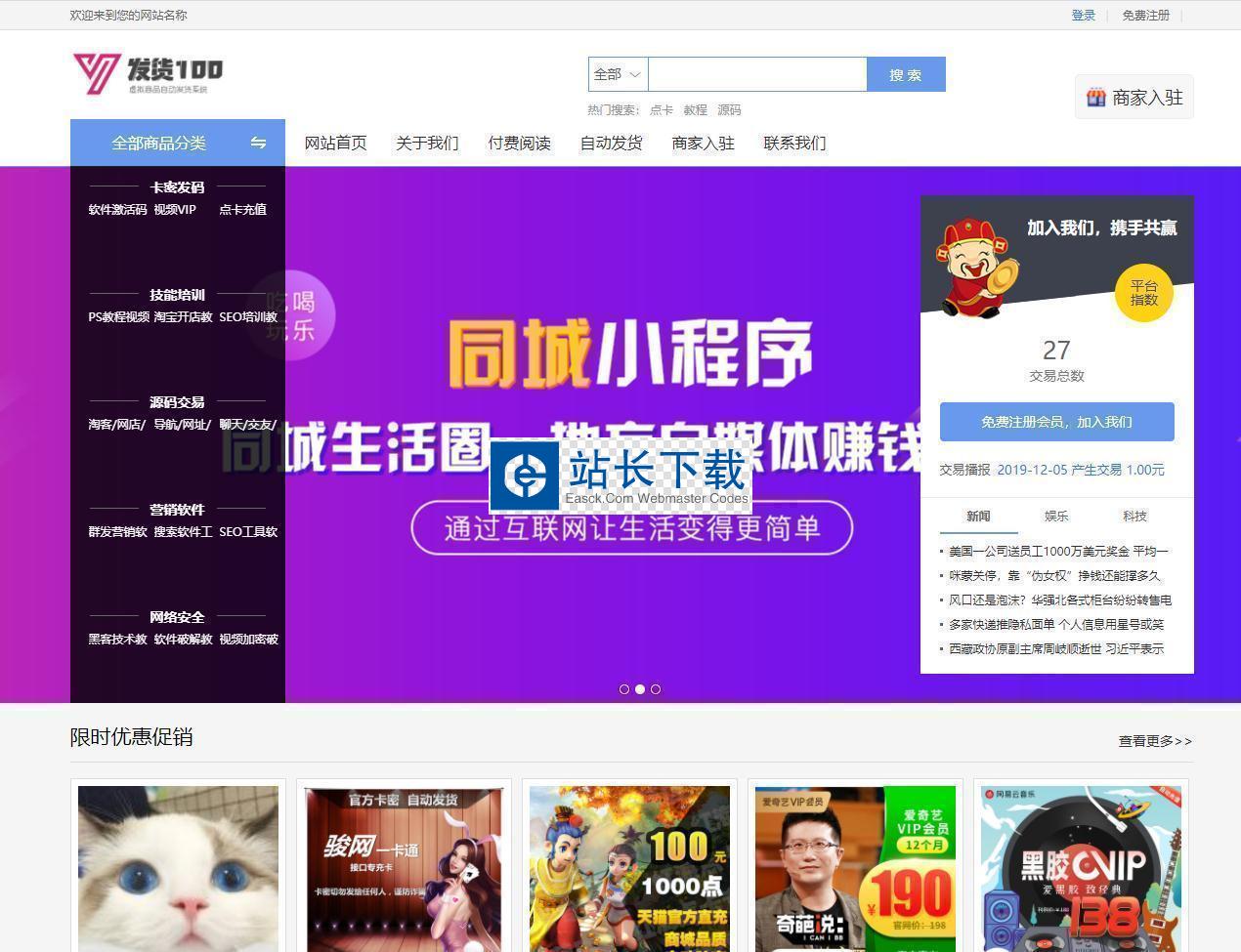 发货100虚拟/实物商品自动发货系统 官方版14.83MB105人下载发货100虚拟商品自动发货系统(含APP小程序)是一套功能强大的虚拟商品自动发货系统/文章付费阅读系统,无需人工值守,客户在线购买即可自动完成交易。支持缺货提醒/快捷登录/回收站/免登录购买等多种功能。 【模板说明】试用版自带一套模板(响应式)【环境支持】PHP环境 / 200M或以上空间大小 / 开启父路径 / 设置index.php为默认首页 / 目录写入权限需要开启【数据库】MySQL【安装