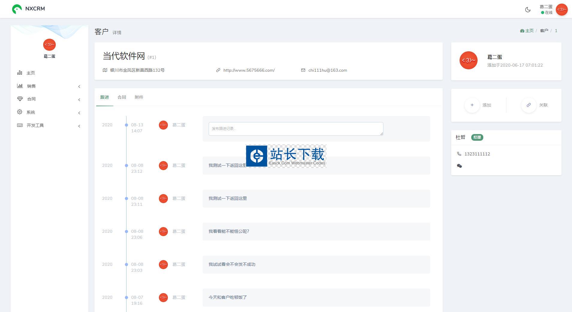 Nxcrm是宁夏南相开发的客户管理系统,包含了线索,商机,合同,收款,客户,附件,联系人,跟进动态等功能。囊括可客户管理所需的大多数功能。后期版本我们将增加小程序功能。敬请期待。