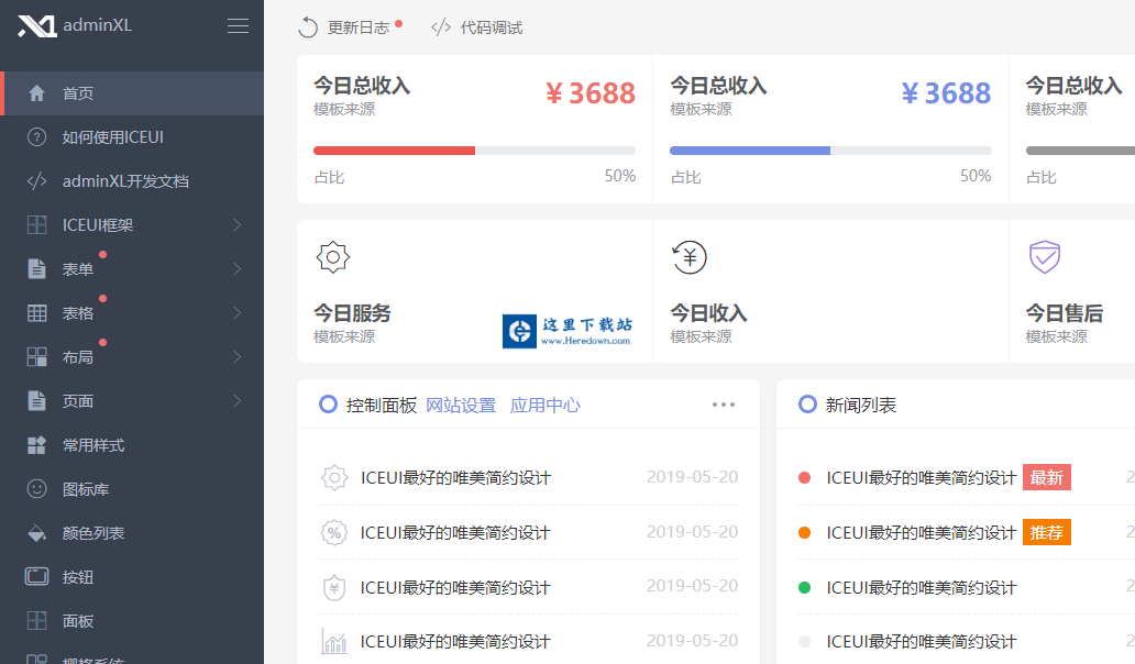 ICEUI的最终目的并不是单纯的做一套前后端框架,她将是快速建站的最佳选择,内置大量而丰富的样式,可视化编辑,自动生成优雅的界面。