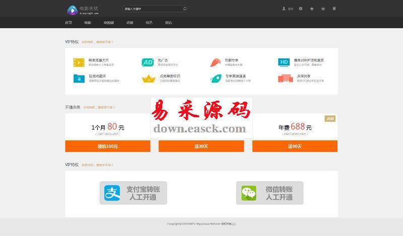 帝国cms在线视频网站源码 v2.3.16.38 MB101人下载帝国cms内核Html5响应式在线视频网站源码。整合CKPlayer,支持的MP4+FLV格式。适合做视频播放和下载站点,默认可以播放优酷土豆腾讯等视频站点的视频(通用播放分享代码,非解析!)
