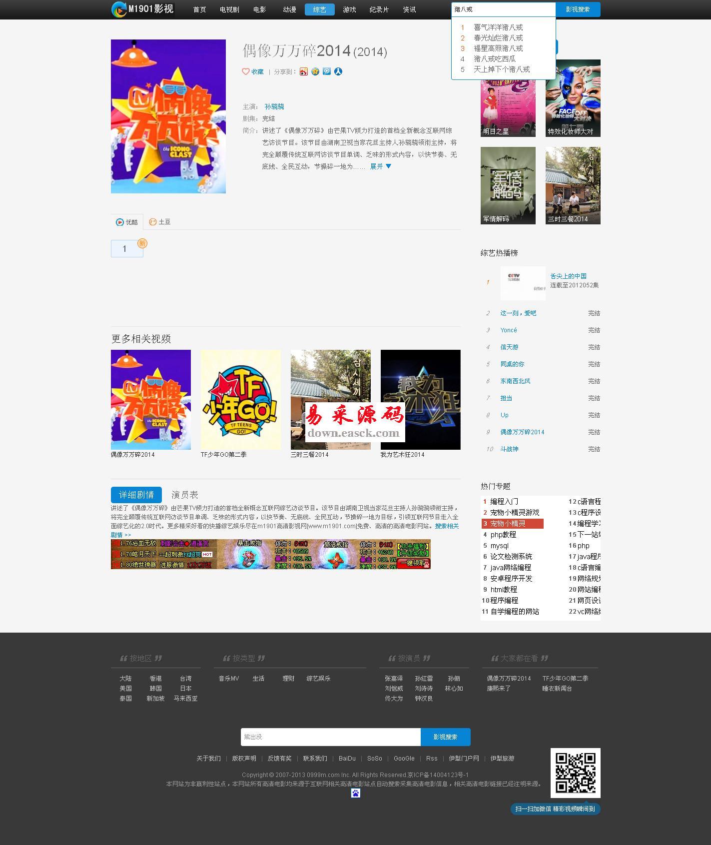 帝国cms在线视频网站源码 v2.3.16.38 MB101人下载帝国cms内核Html5响应式在线视频网站源码。整合CKPlayer,支持的MP4+FLV格式。适合做视频播放和下载站点,默认可以播放优酷土豆腾讯等视频站点的视频(通用播放分享代码,非解析!)