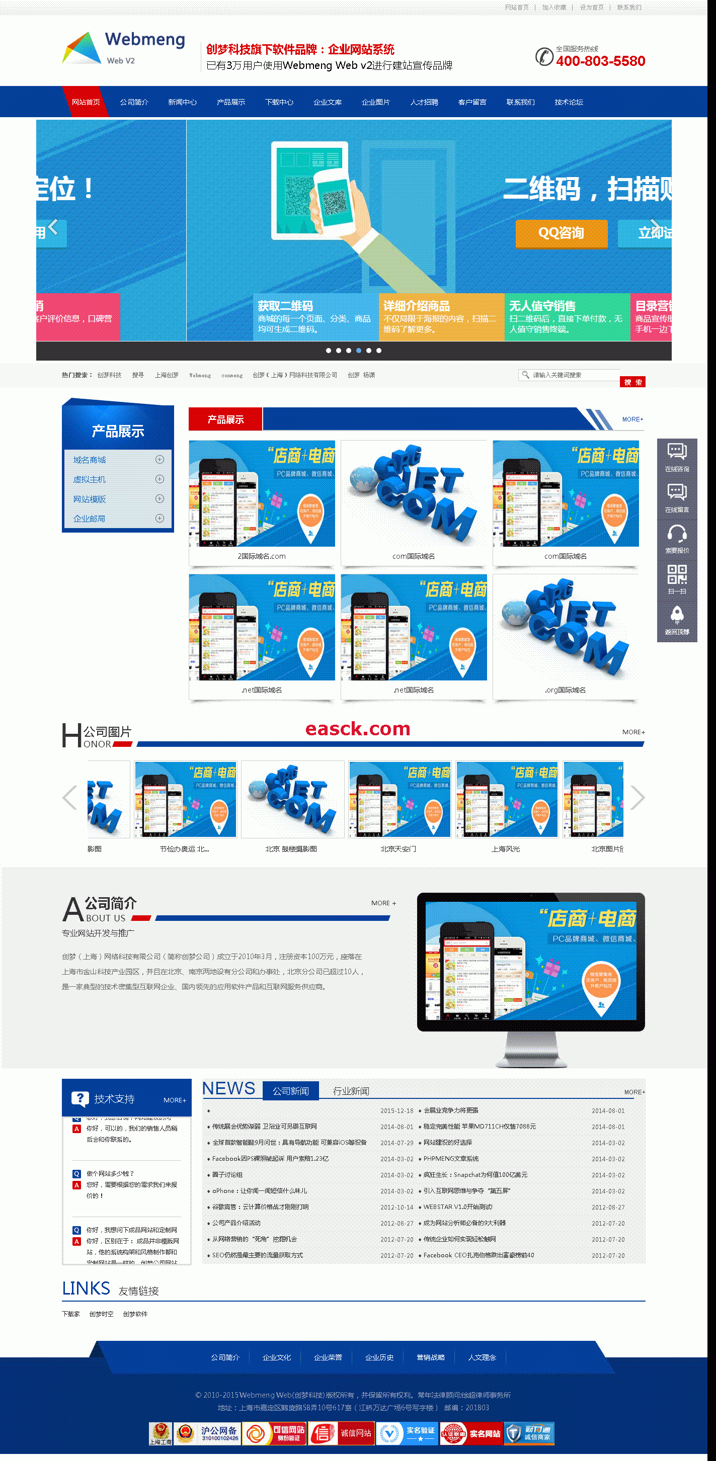 万通CMS企业网站系统 v2.2.123.34 MB105人下载万通CMS网站管理系统采用PHP+MYSQL技术,支持伪静态功能,可生成google和百度地图,支持自定义url、关键字和描述,利于SEO搜索。拥有企业网站常用的模块功能(企业简介功能、新闻功能、