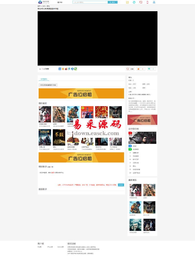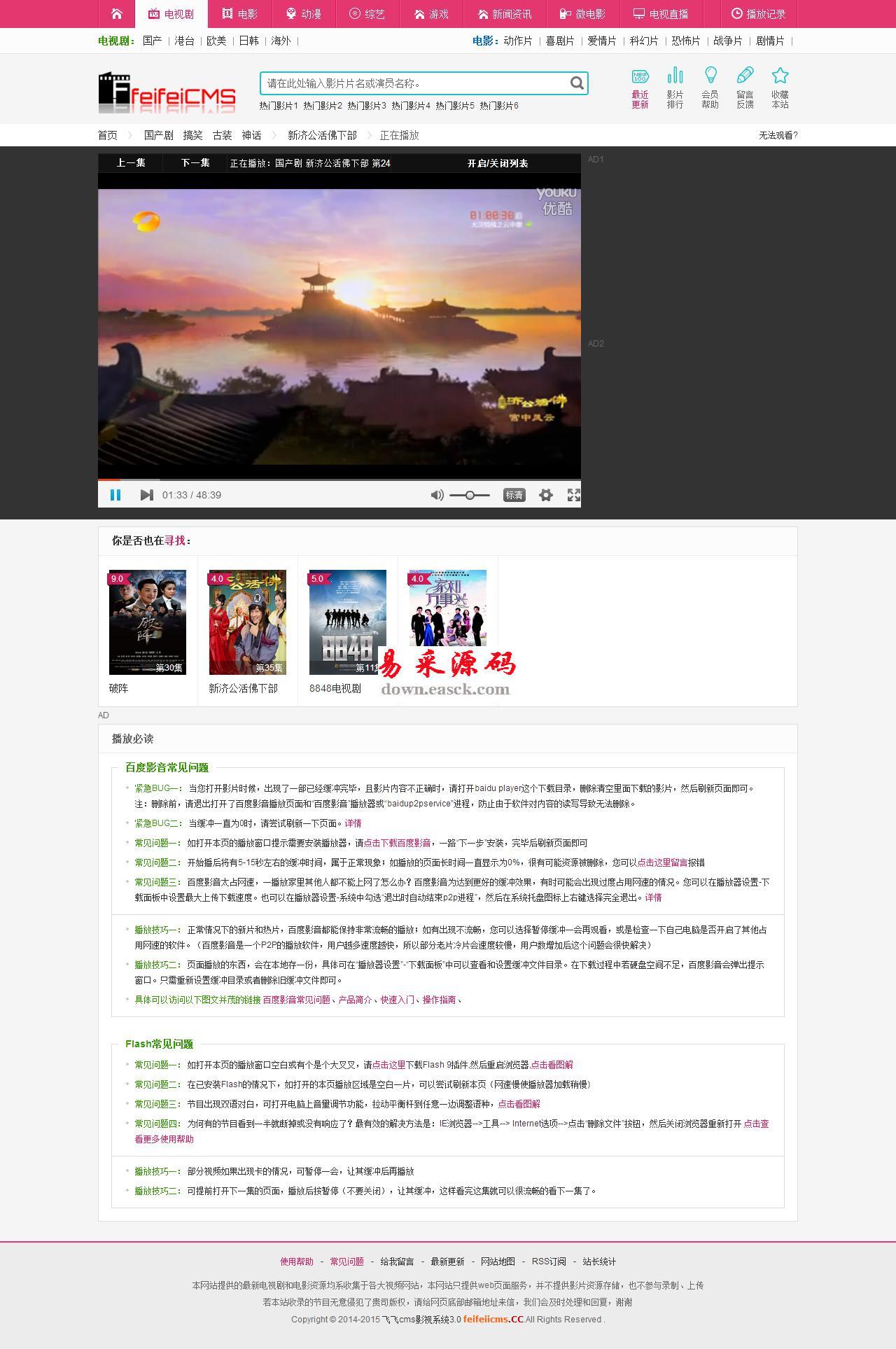 帝国cms在线视频网站源码 v2.3.16.38 MB101人下载帝国cms内核Html5响应式在线视频网站源码。整合CKPlayer,支持的MP4+FLV格式。适合做视频播放和下载站点,默认可以播放优酷土豆腾讯等视频站点的视频(通用播放分享代码,非解析!)