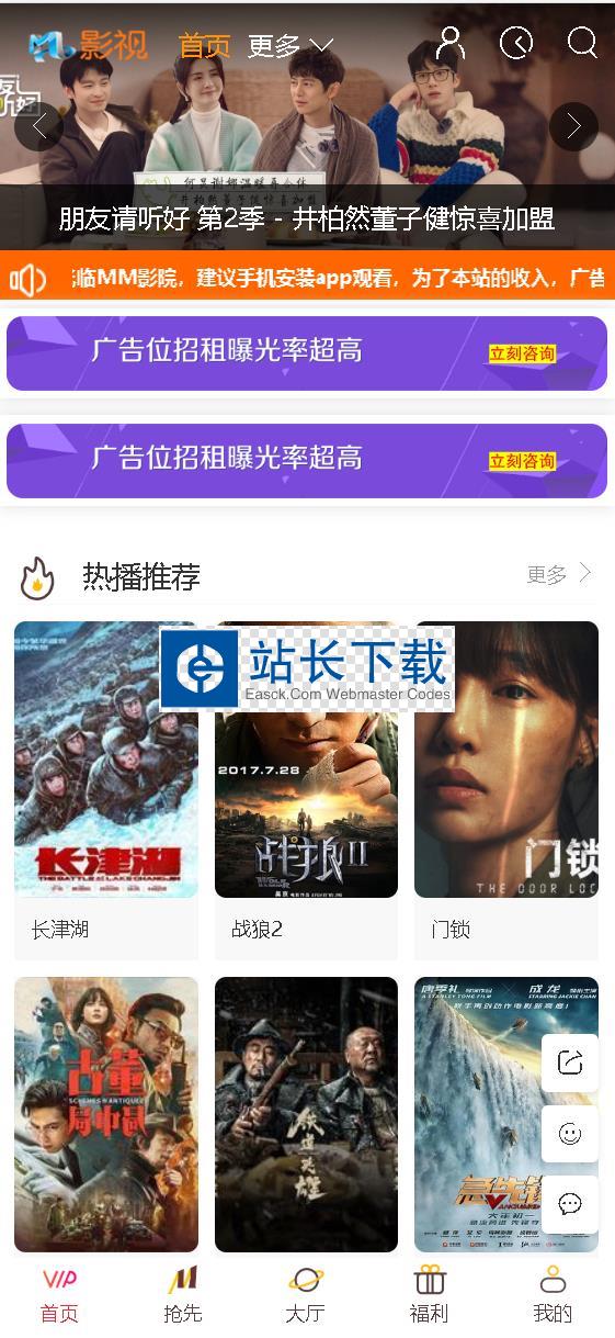 3、返璞归真:没有那些花里胡哨的鸡肋功能、回归电影视频站的核心本质“免费观看”、本程序试图以最简单的架构方式免费为网民提供点播服务功能。