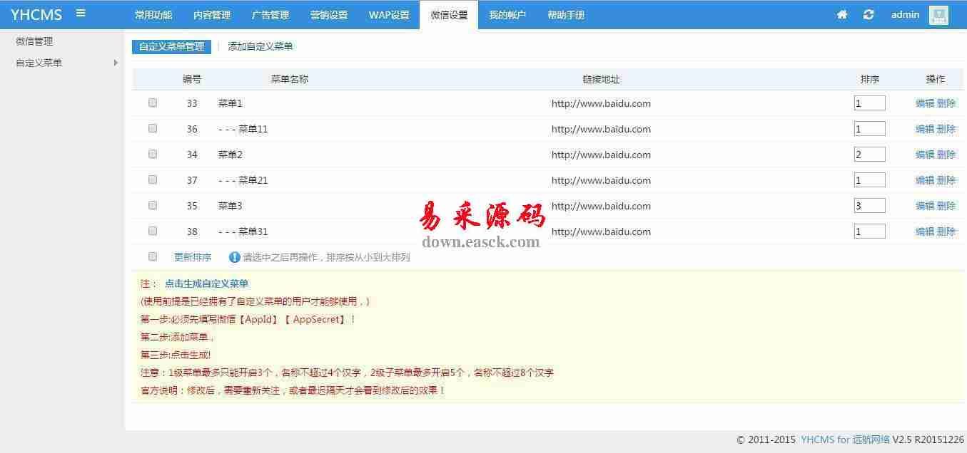 YIXUNCMS网站建设系统 v2.0.4.3 增强版 3.98 MB109人下载YIXUNCMS网站建设系统是由易迅软件工作室专为中小型企业开发的一套展示类网站系统,采用目前流行的PHP语言并搭配性能稳定的MYSQL数据库。系统特点:1.采用目前流行的PHP语言编写,底层采用超轻量级框架作为系统支撑;2.页面布局使用DIV+CSS技术,遵循WEB标准