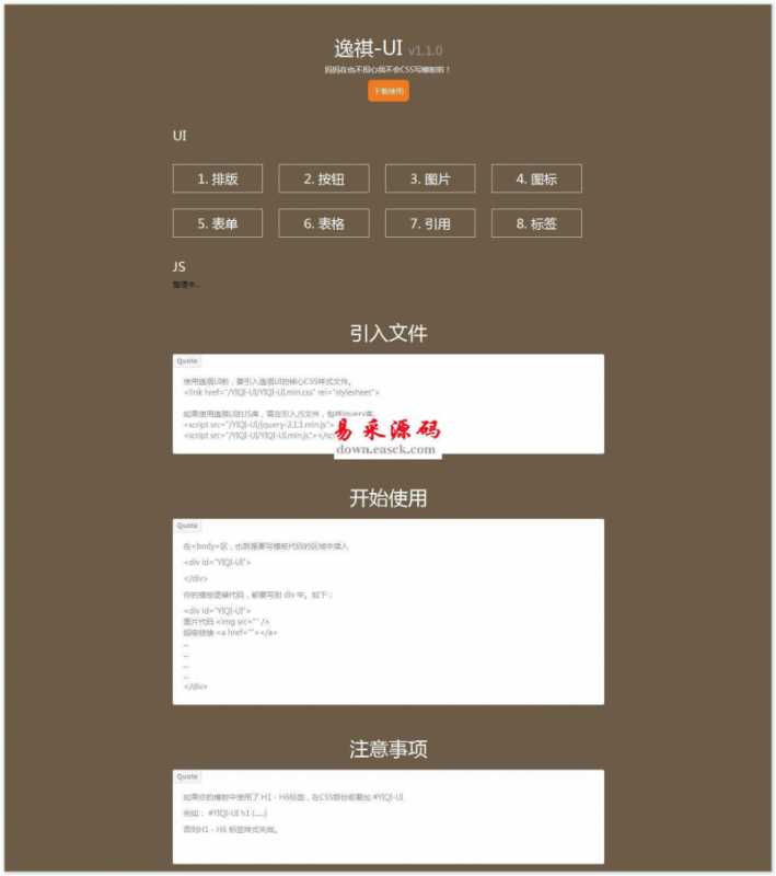 Foundation响应式前端框架11.44MB106人下载Foundation响应式前端框架是一个易用、强大而且灵活的框架,用于构建基于任何设备上的 Web 应用。提供多种 Web 上的 UI 组件,如表单、按钮、Tabs 等等。Foundation 是世界上比较先进的响应式前端框架。使用 Foundation 快速从原型到生产、构建可在任何类型设备上运行的站点或应用程序。包括一个完全可定制的响应式网格、一个大型 Sass 混合库、常用的 JavaScr