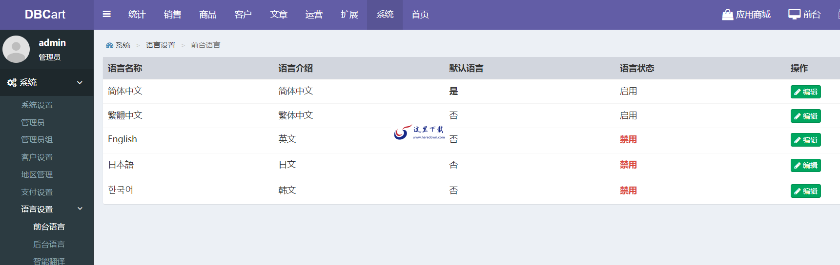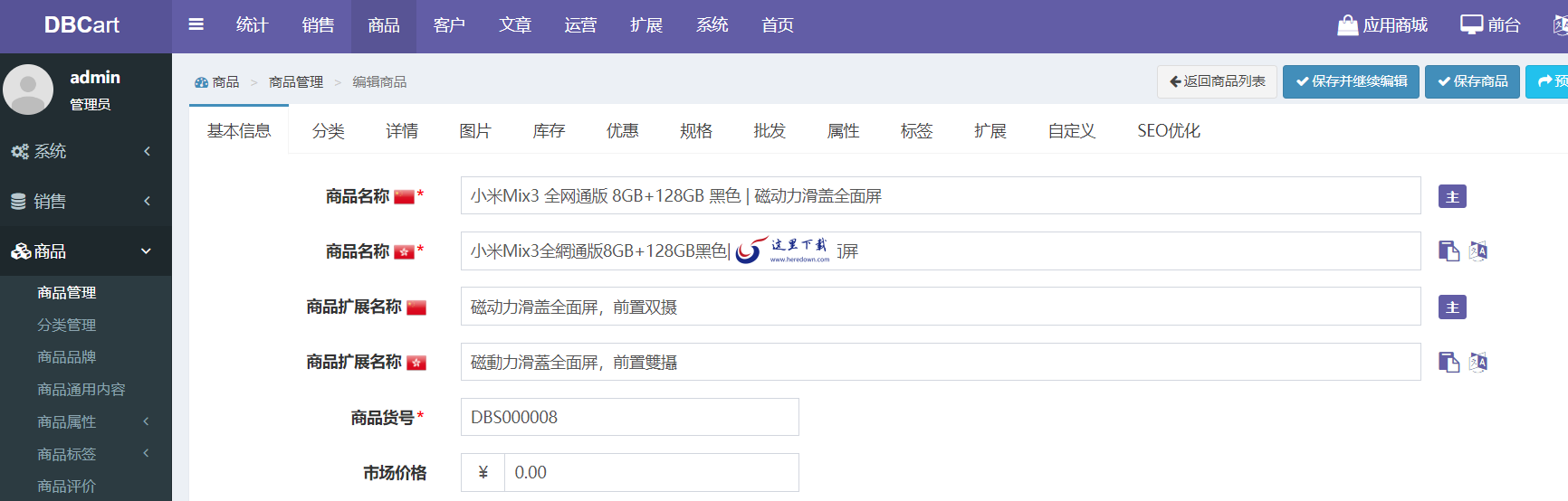 DBCart企业级开源(多语言)商城系统,使用PHP语言基于Laminas + Doctrine 2 组合框架开发完成。可定制、多终端、多场景、多支付、多语言、多货币;严谨的安全机制,可靠稳定;方便的操作管理,节约时间;清晰的权限分配,责任分明;便捷的更新处理,一键搞定;丰富的插件市场,扩展无限。