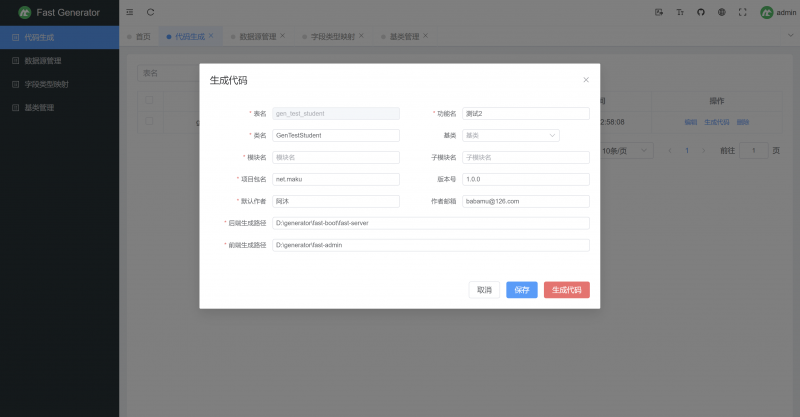 项目访问路径:http://localhost:8088/maku-generator/index.html