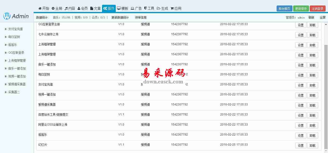 耳朵音乐 v4.0 20160723耳朵音乐是一款界面采用DISCUZ后台样式与UCHome用户中心样式相结合、内核由高速模板引擎与缓存机制等框架并存的PHP音乐系统,目前支持GBK、UTF8两种编码供选择。 耳朵音乐v4.0 20160723