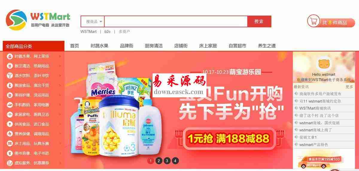 WSTMart多商户商城 v1.1.0WSTMart多商户商城是一个以thinkphp5.0为核心进行开发的php多用户B2B2C商城系统。Thinkphp因其优秀的架构设计、通俗易懂的教程以及超级强大的操作数据库而成为国内最流行的一款开源框架,而为API开发而生thinkphp 5的发布更是受到广大企业及开发者的欢迎,WSTMart电子商务系统是商淘软件基于thinkphp 5.0框架开发的产品,也是目前为数不多的基于thinkphp 5.0开发的多商户商城产品。WSTMart系统功能简介:1、强大的自定义商品、品牌功能首页商品、品牌可完全由后台自定义控制,以及每个分类的商品列表页面,均可在后台完美控制。2、强大的广告管理功能不再只是简单地替换上传的广告,有开发能力的个人或企业可在后台新增广告位置,并能在广告管理处方便调取,无需再多的费心了。3、独立的自营商城完全独立的自营超市,后台可独立点击管理自营超市,独立的自营超市风格4、商品、店铺唯一的二维码每个店铺、每个商品均有唯一的二维码,更好地为商城、商店、商品提供定制推广方式。5、完善的规格管理可自定义多级商品规格,根据不同商品规格、属性进行商品库存、价格设置。WSTMart多商户商城 更新日志:v1.1.0本次版本要新增以下功能:1.修改订单流程,用户拒收之后,订单就表示完结。取消原来需要商家同意或者不同意拒收的流程。2.修改退款逻辑,改成用户自行申请退款。3.增加推荐店铺、推荐品牌标签。4.增加用户、商家资金流水记录。5.增加用户提现模块。6.增加用户支付密码设置。7.修改验证邮箱时发出的url加密格式。8.增加风格切换功能。9.删除多余文件。10.增加商家主动结算订单和管理员主动结算订单功能。11.修复多规格商品编辑时出错的bug。12.增加店铺旺旺设置。13.修复运费模板设置bug。14.修改订单投诉逻辑,管理员只进行仲裁,不对订单进行任何变动。15.店铺银行账号增加开户地区设置。16.更新thinkphp版本为5.0.3。17.修复右侧购物车没有选中商品时不显示的bug。18.系统其它程序优化。 WSTMart多商户商城v1.1.0