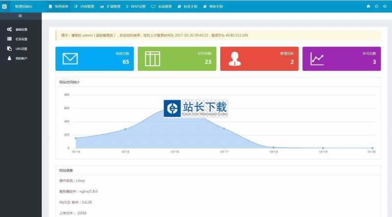 万通CMS企业网站系统 v2.2.123.34 MB105人下载万通CMS网站管理系统采用PHP+MYSQL技术,支持伪静态功能,可生成google和百度地图,支持自定义url、关键字和描述,利于SEO搜索。拥有企业网站常用的模块功能(企业简介功能、新闻功能、