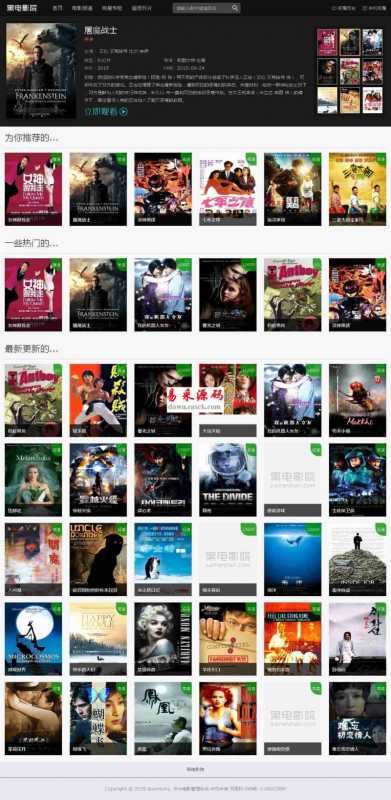 帝国CMS内核Html5响应式在线视频网站源码。整合CKPLAYER,支持的MP4+FLV格式。适合做视频播放和下载站点,默认可以播放优酷土豆腾讯等视频站点的视频(通用播放分享代码,非解析!),集成 CKPLAYER播放器,可以上传和外链自己的MP4、FLV格式的影片!自带帝国播放和下载权限,可以游客,普通用户,普通注册用户扣点和VIP包月包 年等权限播放和下载!自动响应各种平板手机移动设备!到手即可开站!