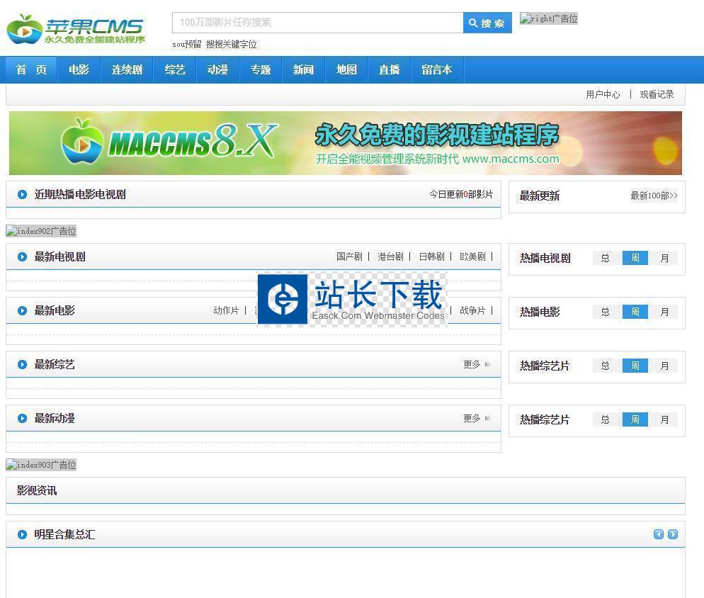 苹果CMS手机版整站 v7.x bulid2015.1.301.55 .MB102人下载苹果CMS7.x免费手机模版,请使用手机浏览演示网站体验效果,界面很不错哦 支持手机页面播放。欢迎大家下载使用. 源码特点:界面简洁 结构清晰 支持手机在线播放 苹果CMS手机版整站