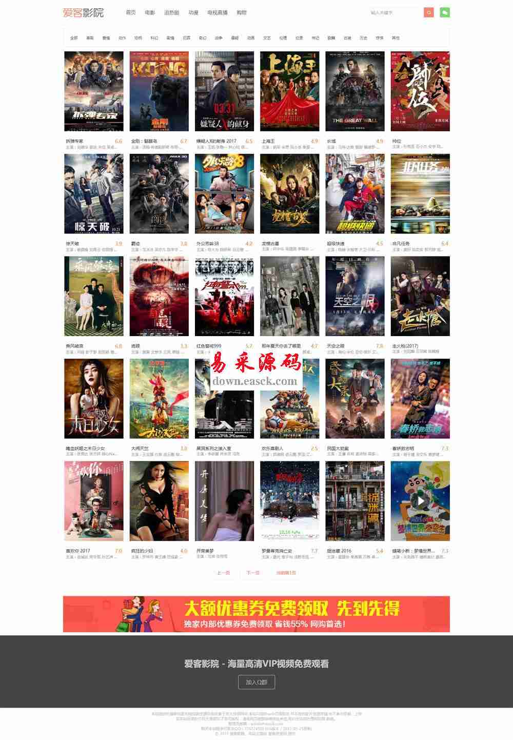 易看影视网站源码是一个以php进行开发的自动采集视频网站源码。