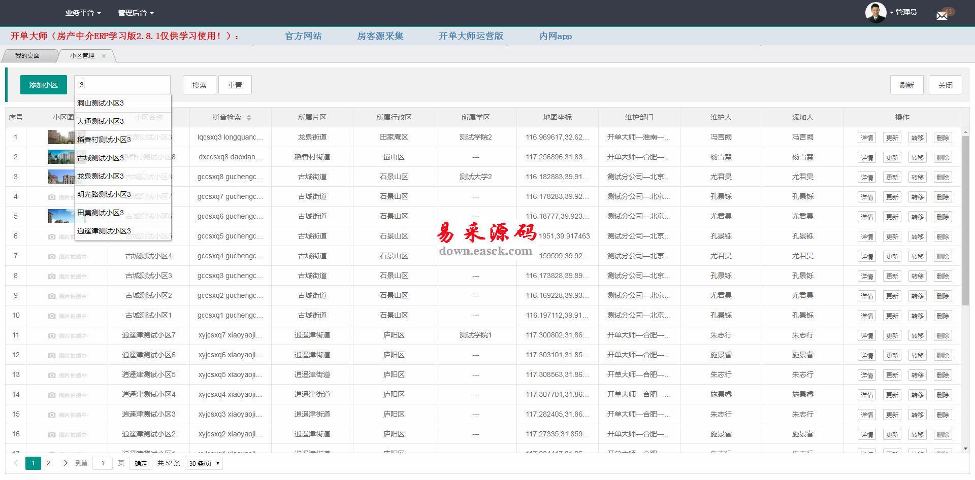 开单大师 开源可定制的房产管理系统30.87MB103人下载开单大师是首家100%开源可定制的房产中介ERP管理系统,手机、电脑、微信、Pad同步使用,内网、外网高级结合,四网合一、一站同步、提高工作效率、安全可靠、操作简单。开单大师详细介绍:开源可定制房产中介 ERP 解决方案:开单大师是全国首家提供房产管理系统和房屋管理系统源代码的服务商,系统拥有功能完善的房源客源管理,同时提供完备的办公、财务、决策分析方案,内外一体全面打通。开单大师100%开放的源
