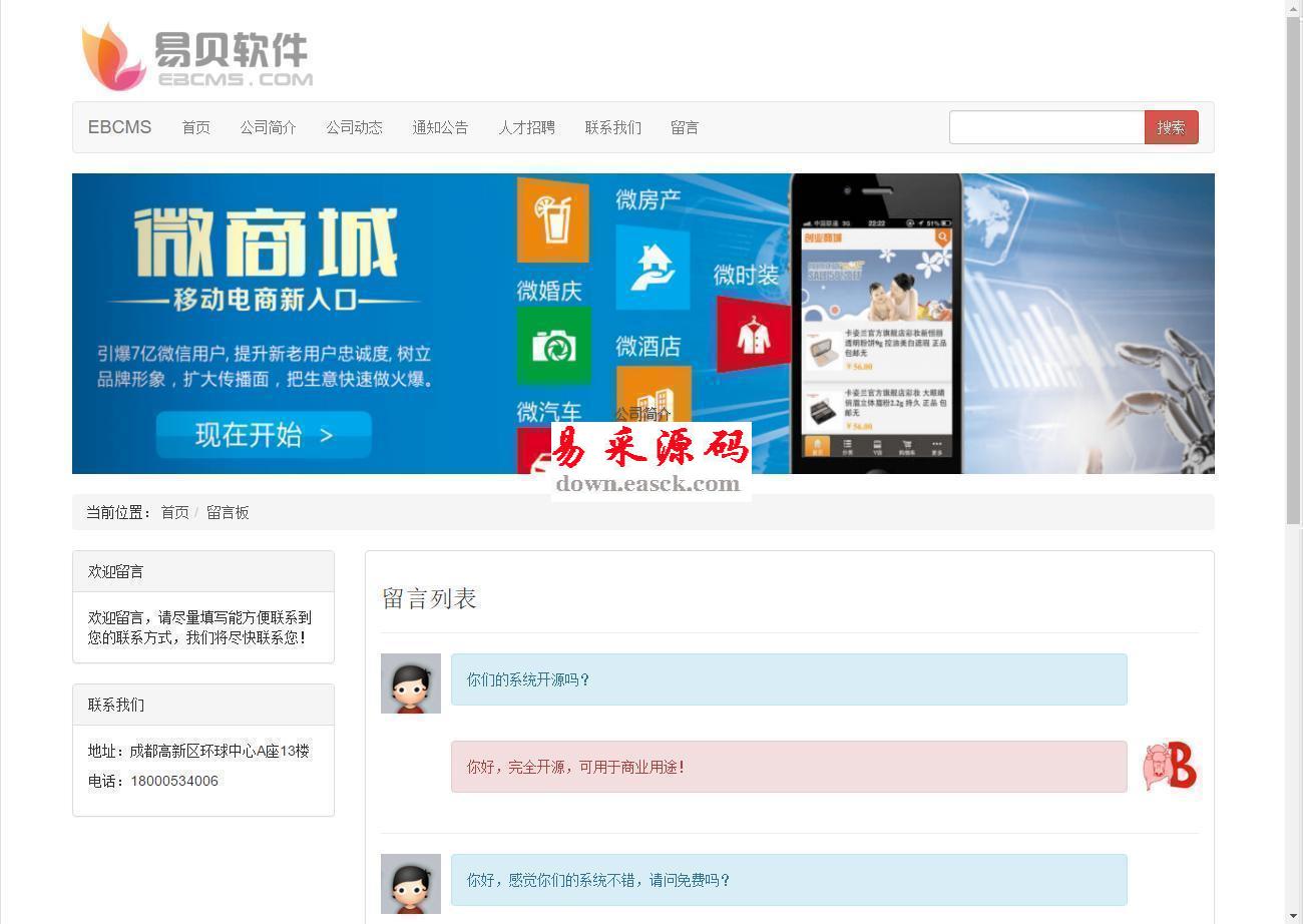MetInfo企业网站管理系统 v5.3.4 14.89 MB123人下载MetInfo 企业网站管理系统,完美实现电脑网站+手机网站+微信公众号三位网络入口为一体的php企业网站管理系统。利用一个后台,就能够便捷的管理电脑网站、手机网站、微信公众号,信息内容都可以一致同步推送。微信公众号管理系统让你无需支付任何费用就可以使