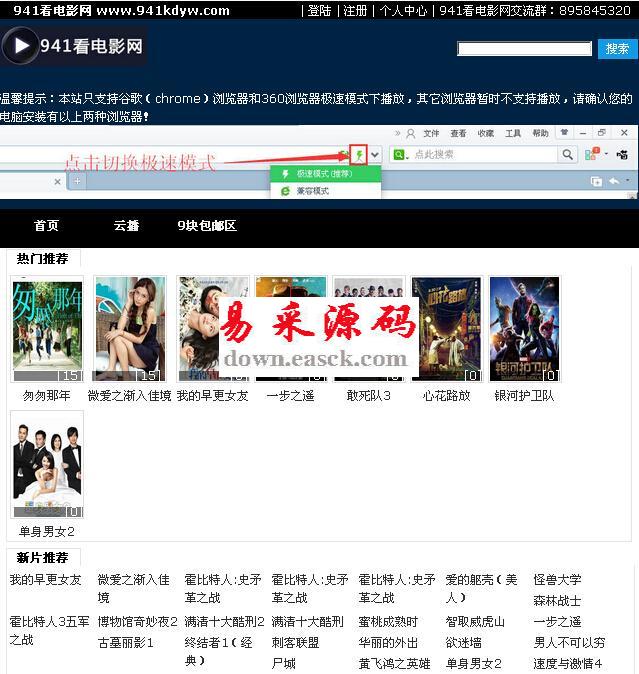 易看影音伪静态版 v1.01易看影音是一个以影视为核心,借鉴现有市场中的各类影视程序,兼具采集、小偷、存储等特色,发展出来的一个功能强大、内核简约、运行存储效率极高的半采集模式影视系统。