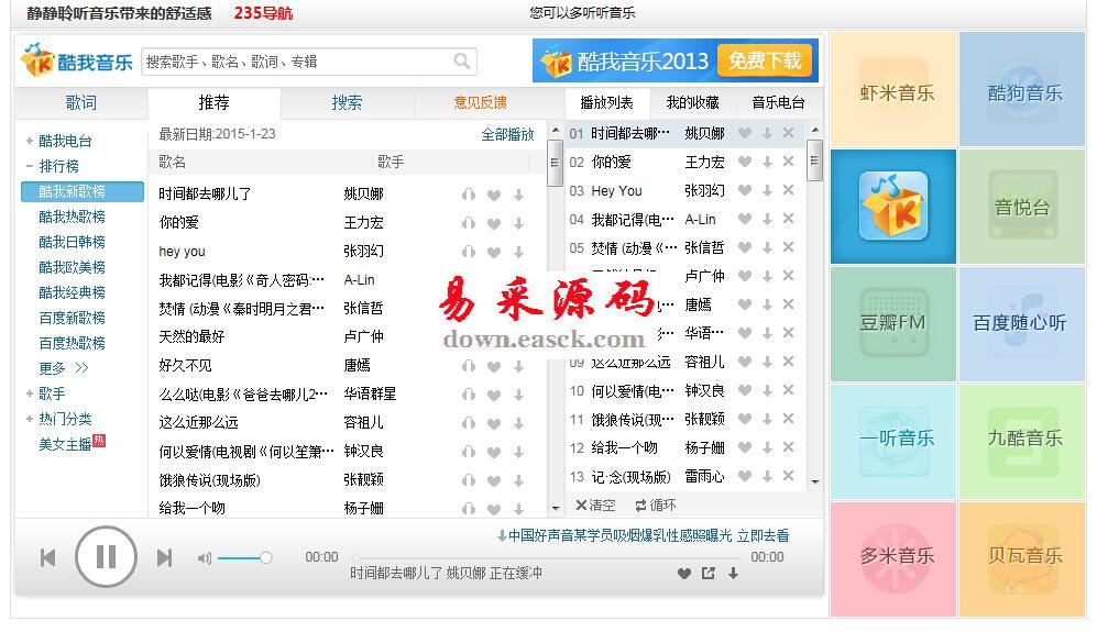 Flash MP3 网页音乐播放器 v1.061 KB106人下载免费MP3/flv音乐列表播放器功能: 1.支持FlashVars调用html代码中的参数; 2.支持mp3音乐格式和flv格式文件播放; 3.显示视频总时长和当前播放进度的位置时间; 4.支持xml,asp,php,aspx,jsp程序列