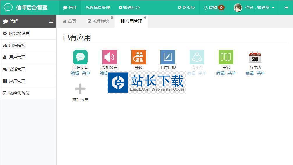 信呼协同办公系统 v1.1.6 2.95 MB102人下载信呼协同办公系统是开源的一款办公系统,跨平台的系统,支持APP,pc网页版,pc客户端等。 简介: 1、让每个企业单位都有自己的工作系统。 2、移动,免费开源工作系统,数据全部自己管理。 3、自定义管理应用,模块数据,权限分配。 4、单据快速提醒推送,重要